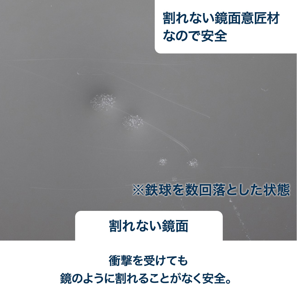 衝撃を受けてもガラス鏡のように割れることがなく安全です。