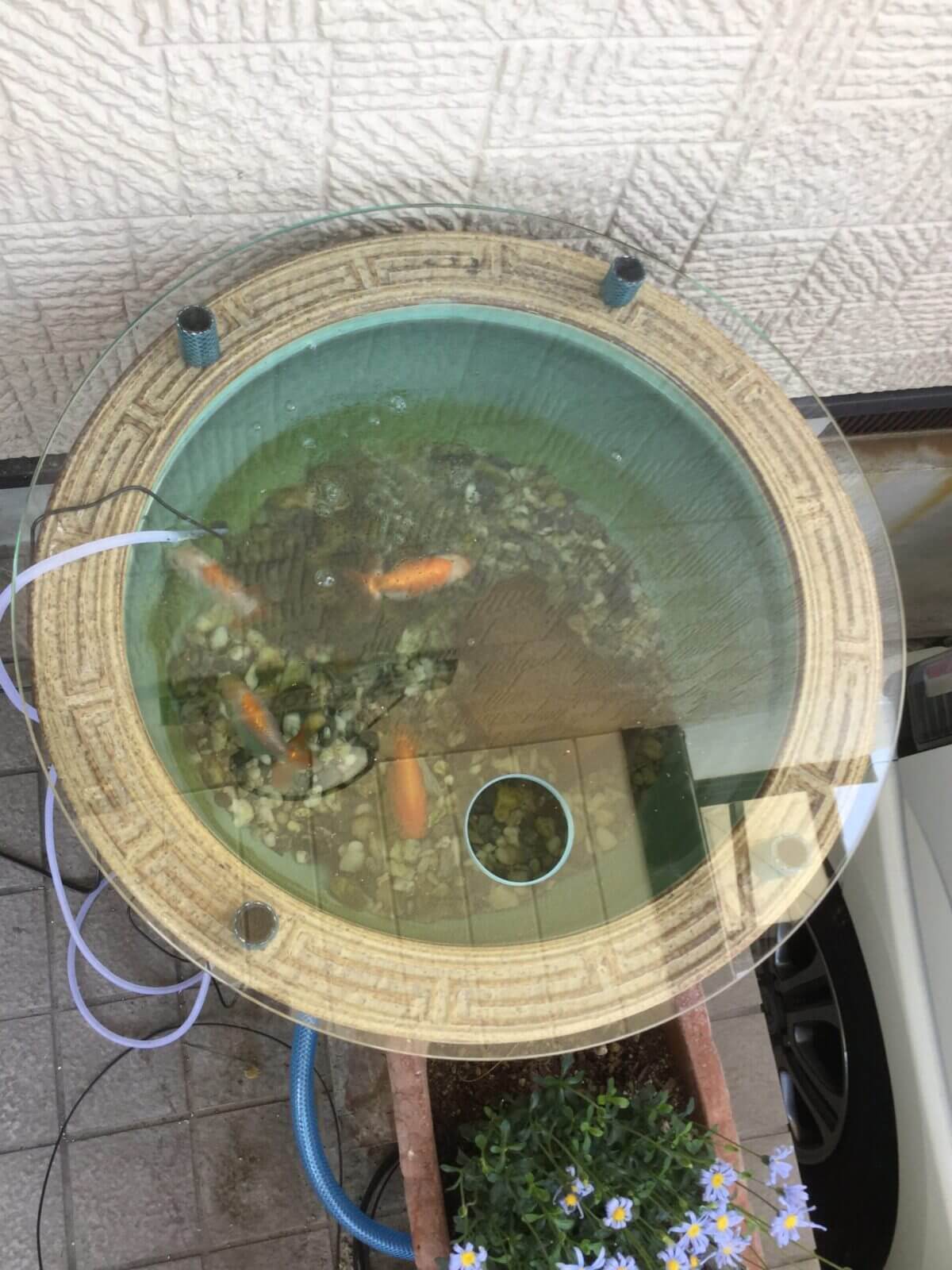 関連記事:睡蓮鉢(水槽)ガラス蓋をセットしたお客様