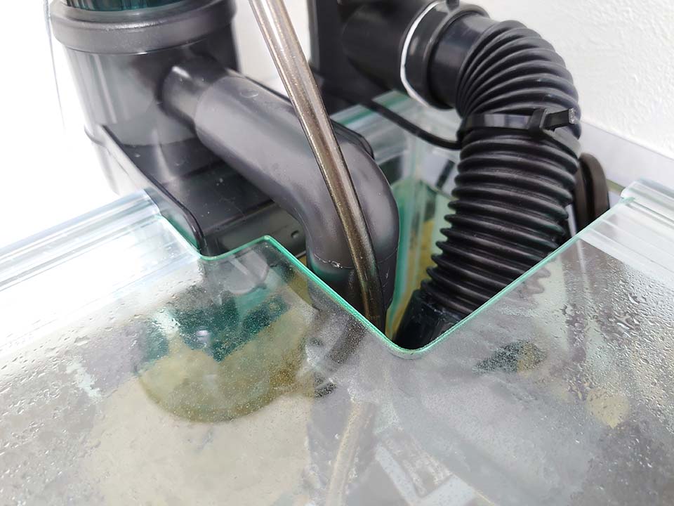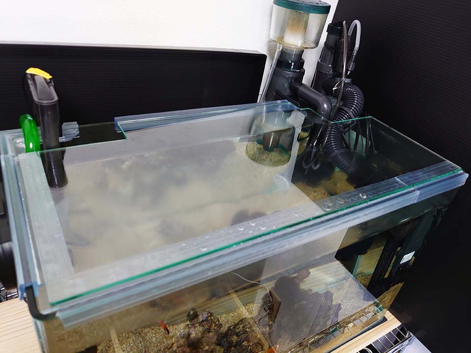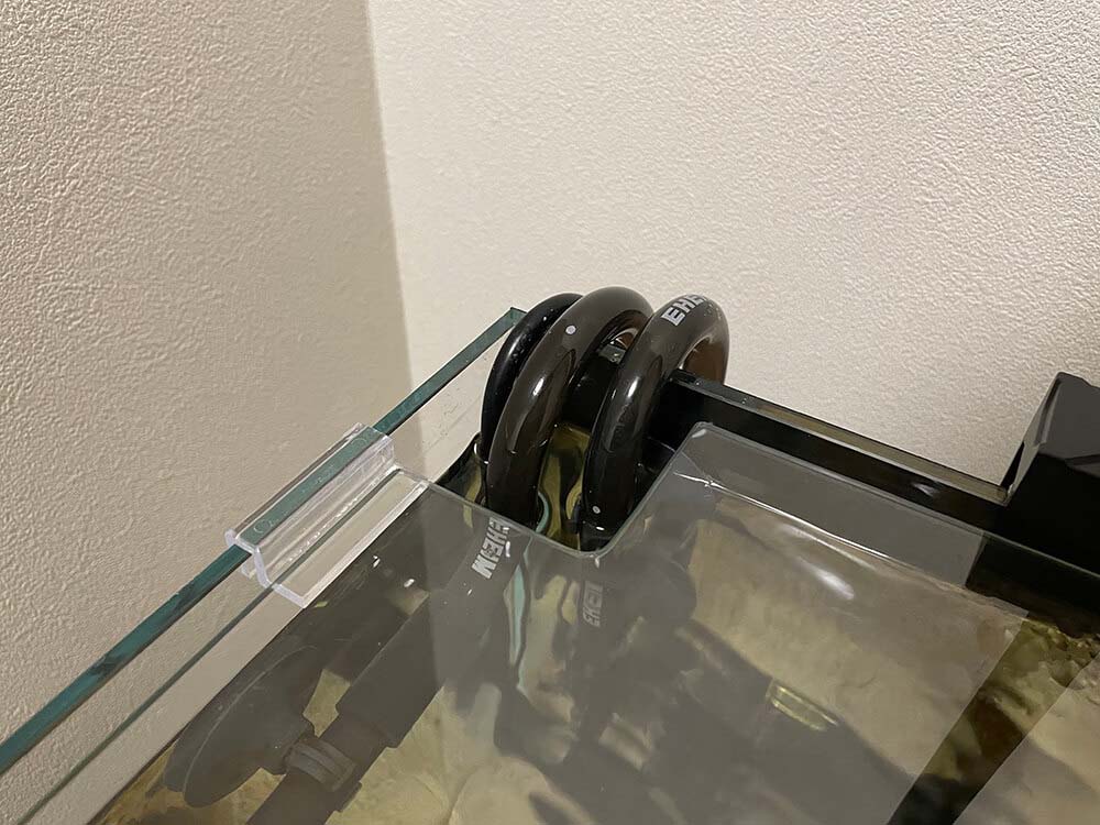 設置中のフィルター機器に合わせた水槽ガラス蓋