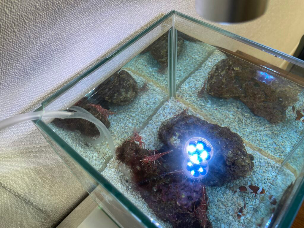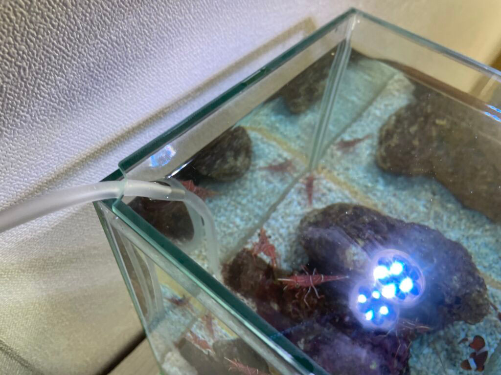 水槽に設置した様子を添付いたします。