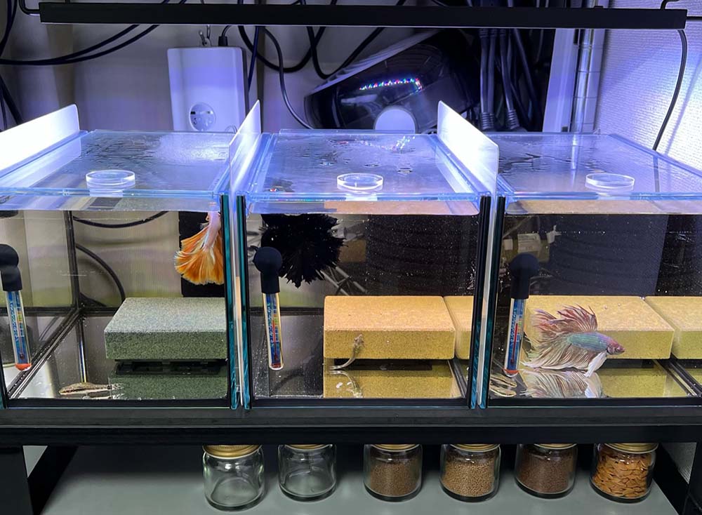 ガラスふたが水槽にぴったりと張り付いてくれるため、エアーの騒音もなくなりました。