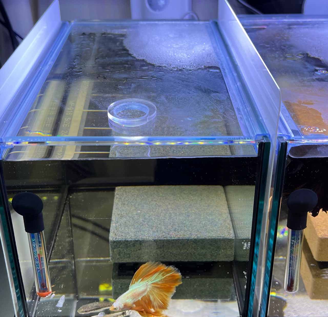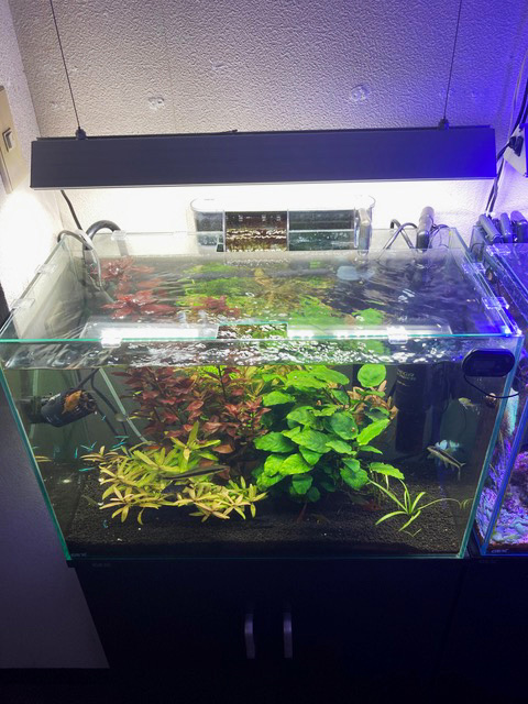 見えにくいかもしれず恐縮ですが、蓋を設置した水槽写真をお送りします。