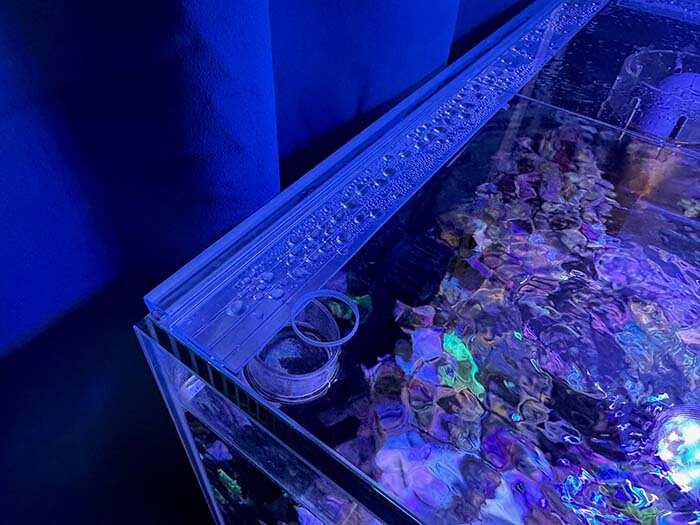 蓋の中心に穴を空けたことにより、ピッタリサイズの蓋であっても一定のメンテナンス性と通気性を確保しつつ海水水槽特有の塩分の飛散もおさえられそうです。