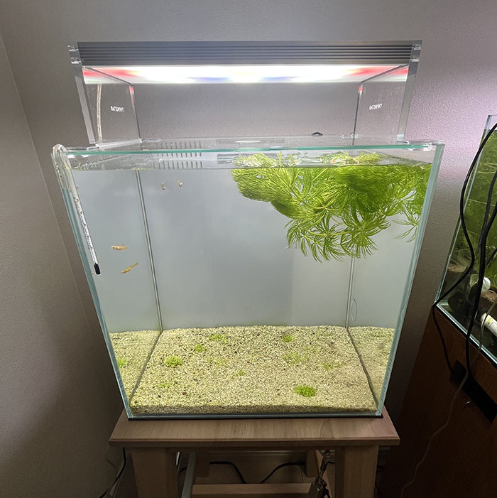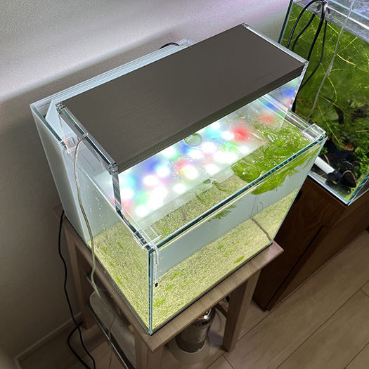 小さい水槽ですので高透過ガラスの利用効果は判りませんが、趣味の世界ですので贅沢をしても良いのではないか?と出費の言い訳としています。