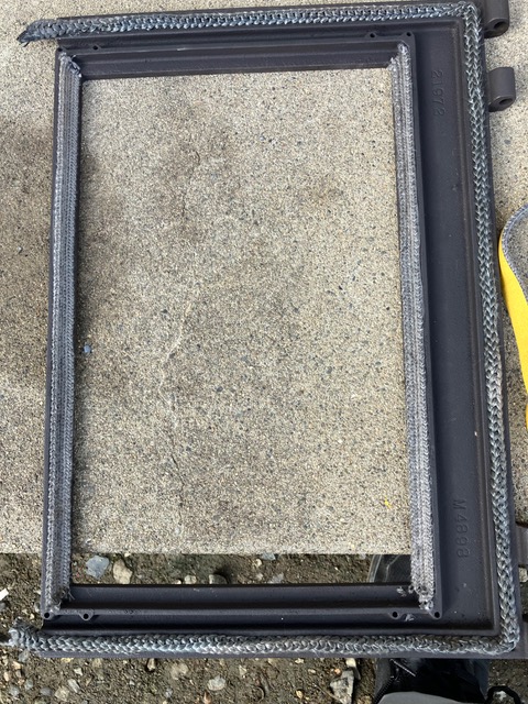 ストーブ本体の枠に収める為のガスケットは、フラットタイプドア用で厚さ3ミリ幅15ミリと耐熱ガラス厚さ5ミリとガスケットの厚さ合計は8ミリになりストーブ本体枠内にきつく、収まるサイズのものが調達できました。